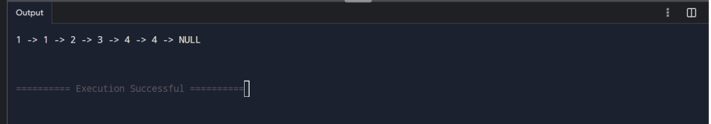 # Definition for singly-linked list.class ListNode: def __init__(self, val=0, next=None): self.val = val self.next = nextclass Solution: def mergeTwoLists(list1, list2): arr = [] while list1 is not None: arr.append(list1.val) list1 = list1.next while list2 is not None: arr.append(list2.val) list2 = list2.next arr.sort() temp = ListNode(-1) curr = temp for value in arr: curr.next = ListNode(value) curr = curr.next return temp.next def printList(node): while node: print(node.val, end=" -> ") node = node.next print("NULL")if __name__ == "__main__": head1 = ListNode(1) head1.next = ListNode(2) head1.next.next = ListNode(4) head2 = ListNode(1) head2.next = ListNode(3) head2.next.next = ListNode(4) result = Solution.mergeTwoLists(head1, head2) printList(result)